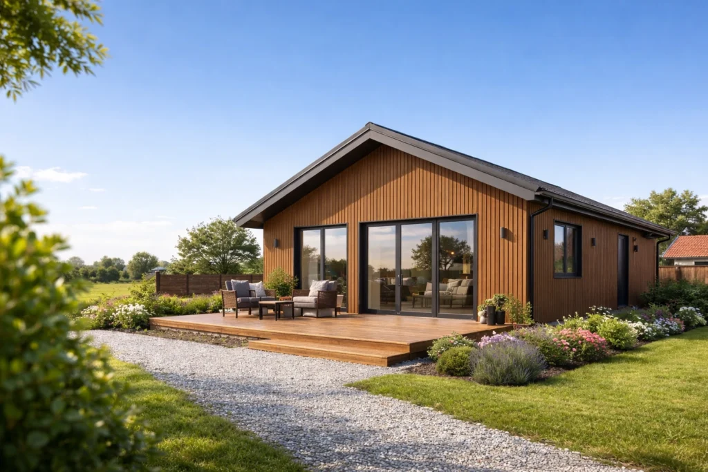 În fabrică: 60%–80% (orientativ; nu include fundația/branșamente/amenajări exterioare)